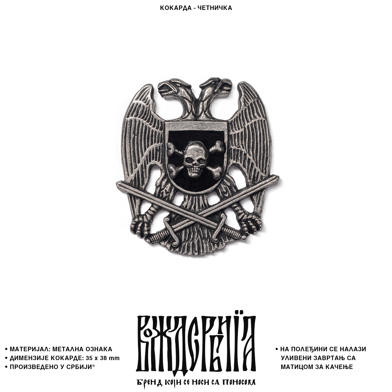 На полеђини кокарде се налази уливени завртањ са матицом за качење.