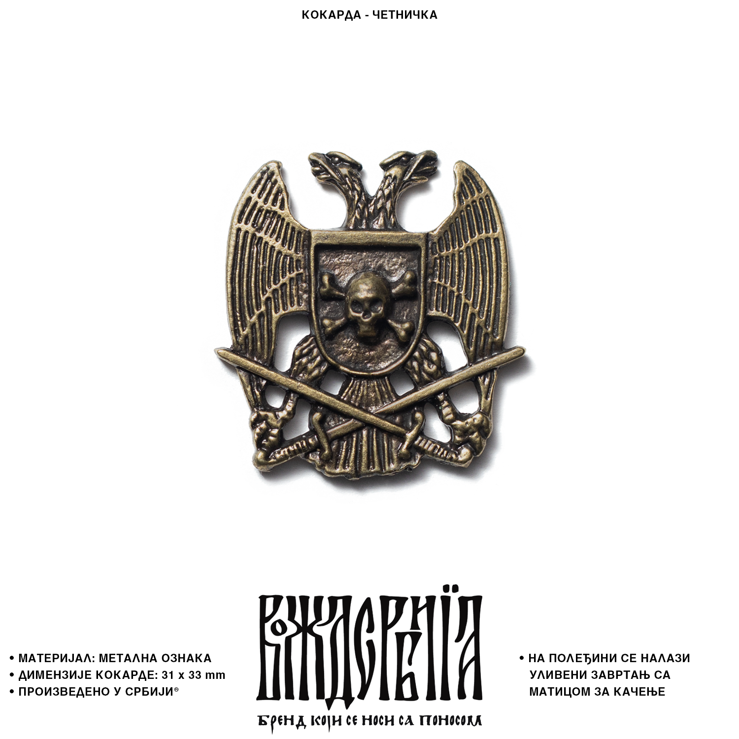 На полеђини кокарде се налази уливени завртањ са матицом за качење.