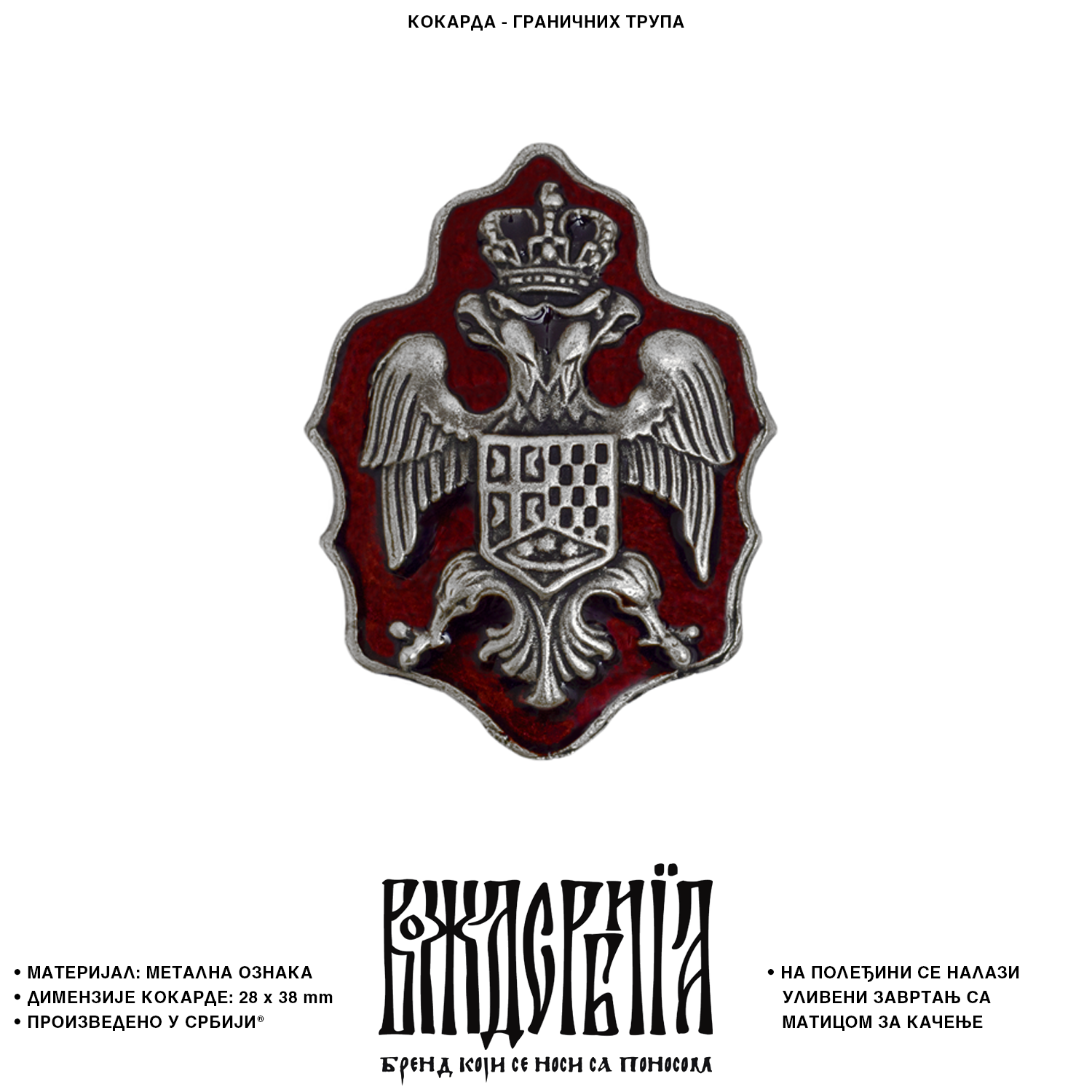 На полеђини кокарде се налази уливени завртањ са матицом за качење.