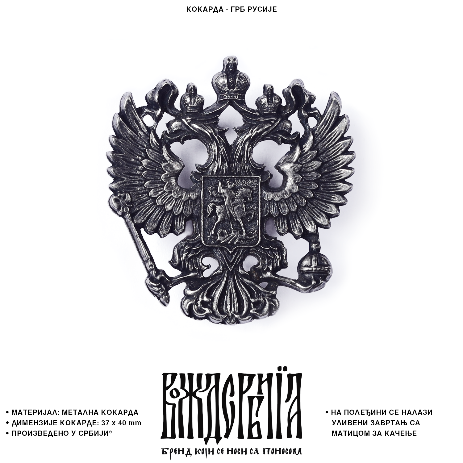 На полеђини кокарде се налази уливени завртањ са матицом за качење.
