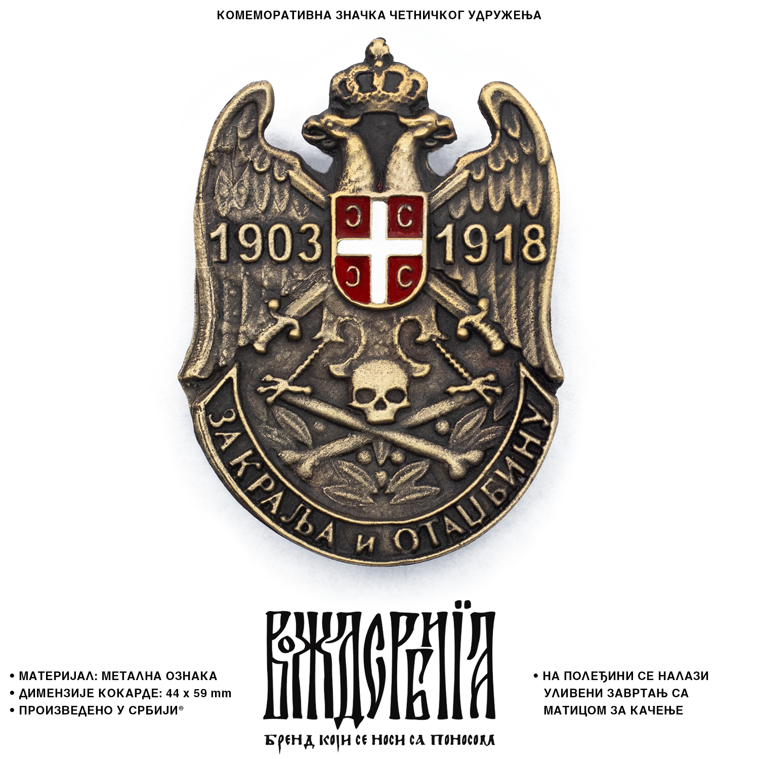 На полеђини кокарде се налази уливени завртањ са матицом за качење.