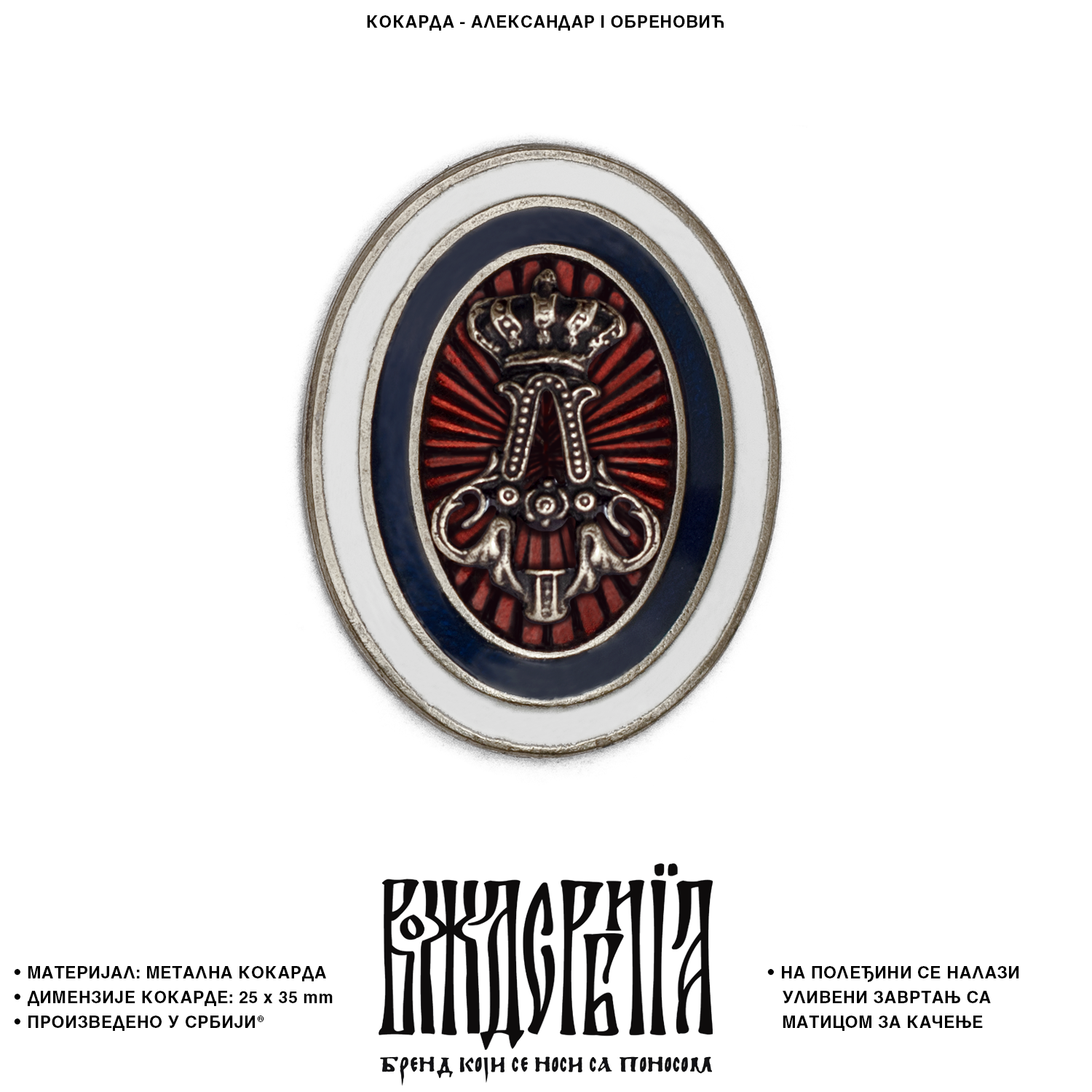 На полеђини кокарде се налази уливени завртањ са матицом за качење.