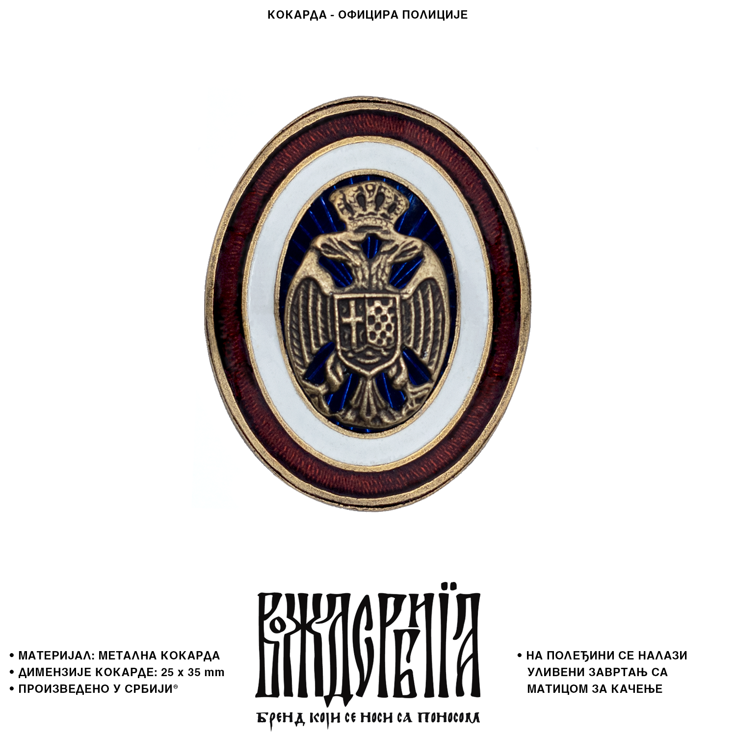 На полеђини кокарде се налази уливени завртањ са матицом за качење.