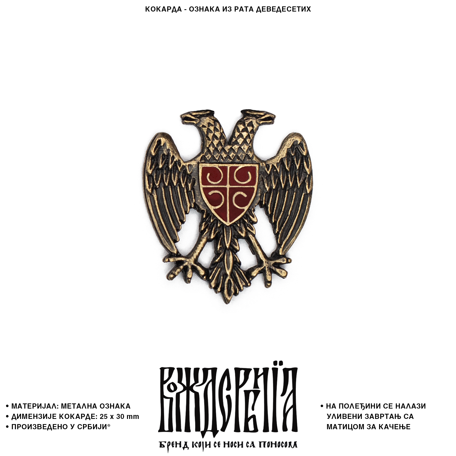 На полеђини кокарде се налази уливени завртањ са матицом за качење.