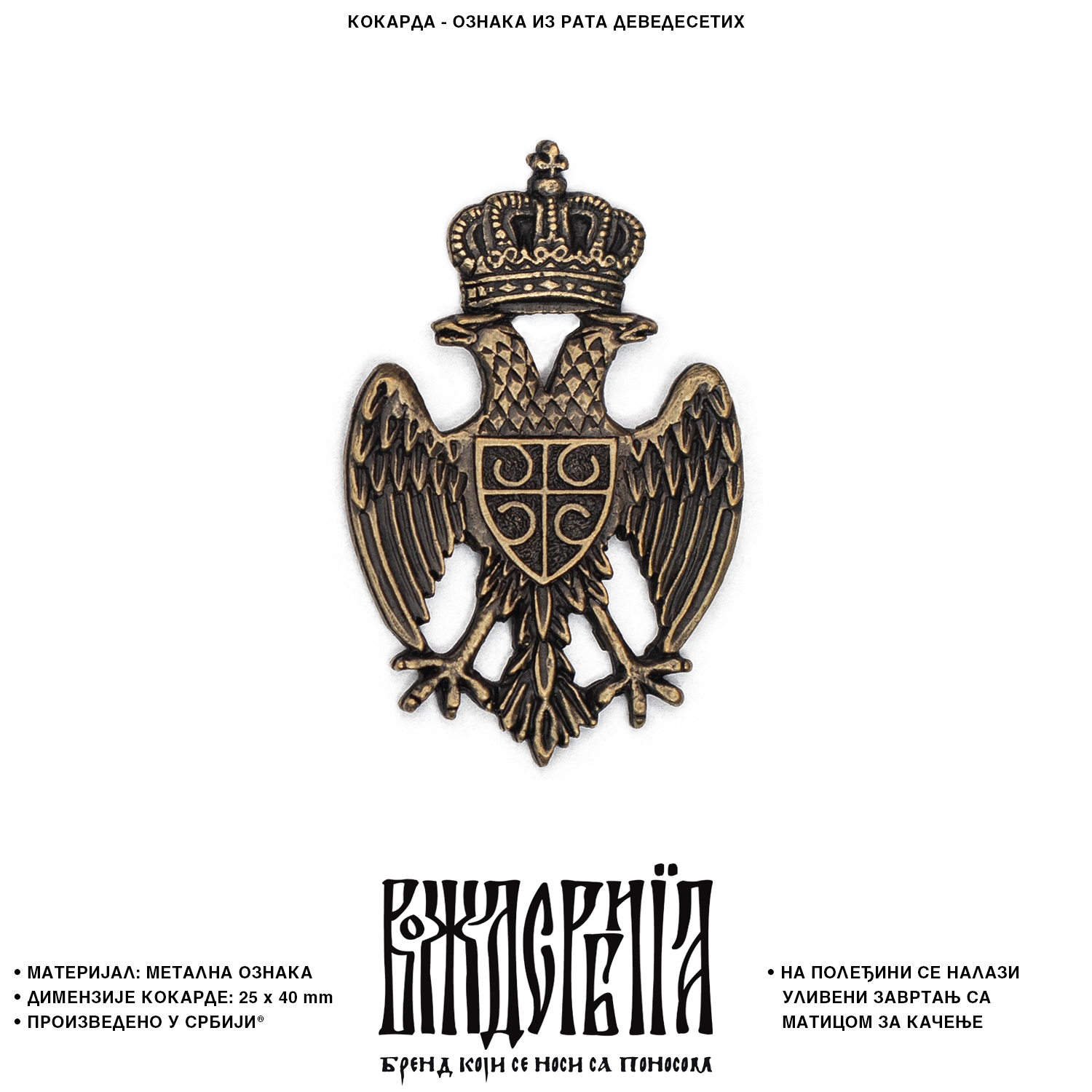 На полеђини кокарде се налази уливени завртањ са матицом за качење.