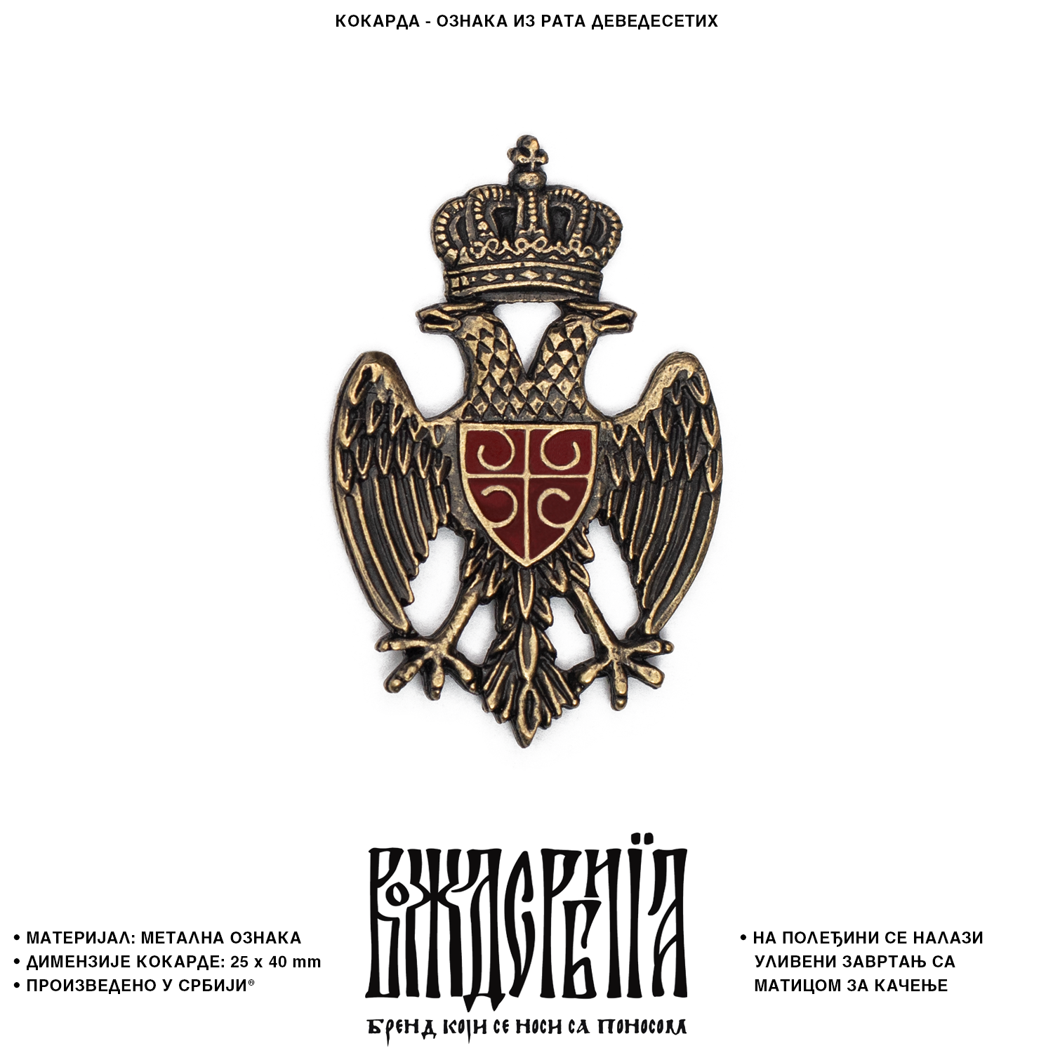 На полеђини кокарде се налази уливени завртањ са матицом за качење.