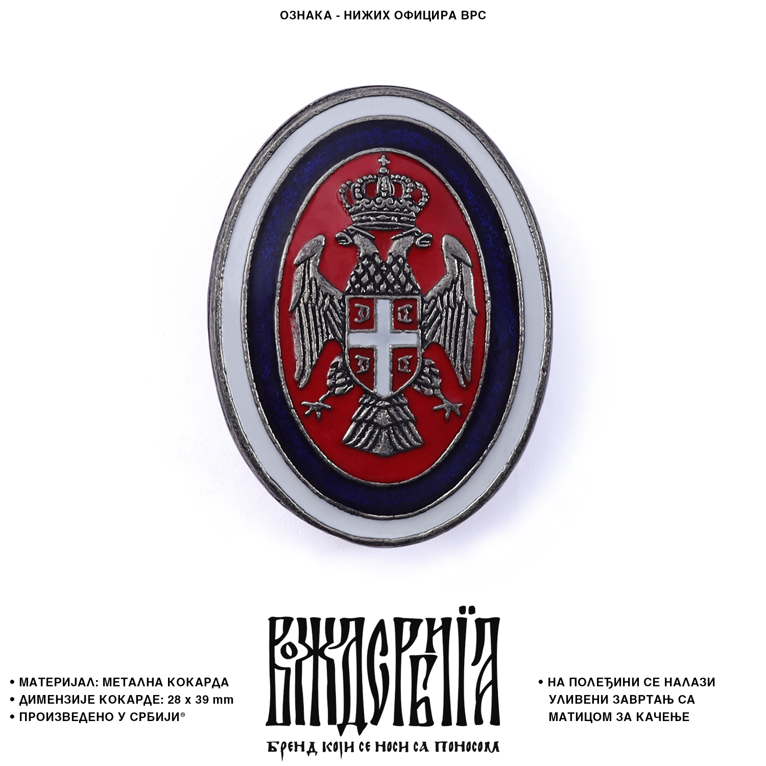 На полеђини кокарде се налази уливени завртањ са матицом за качење.