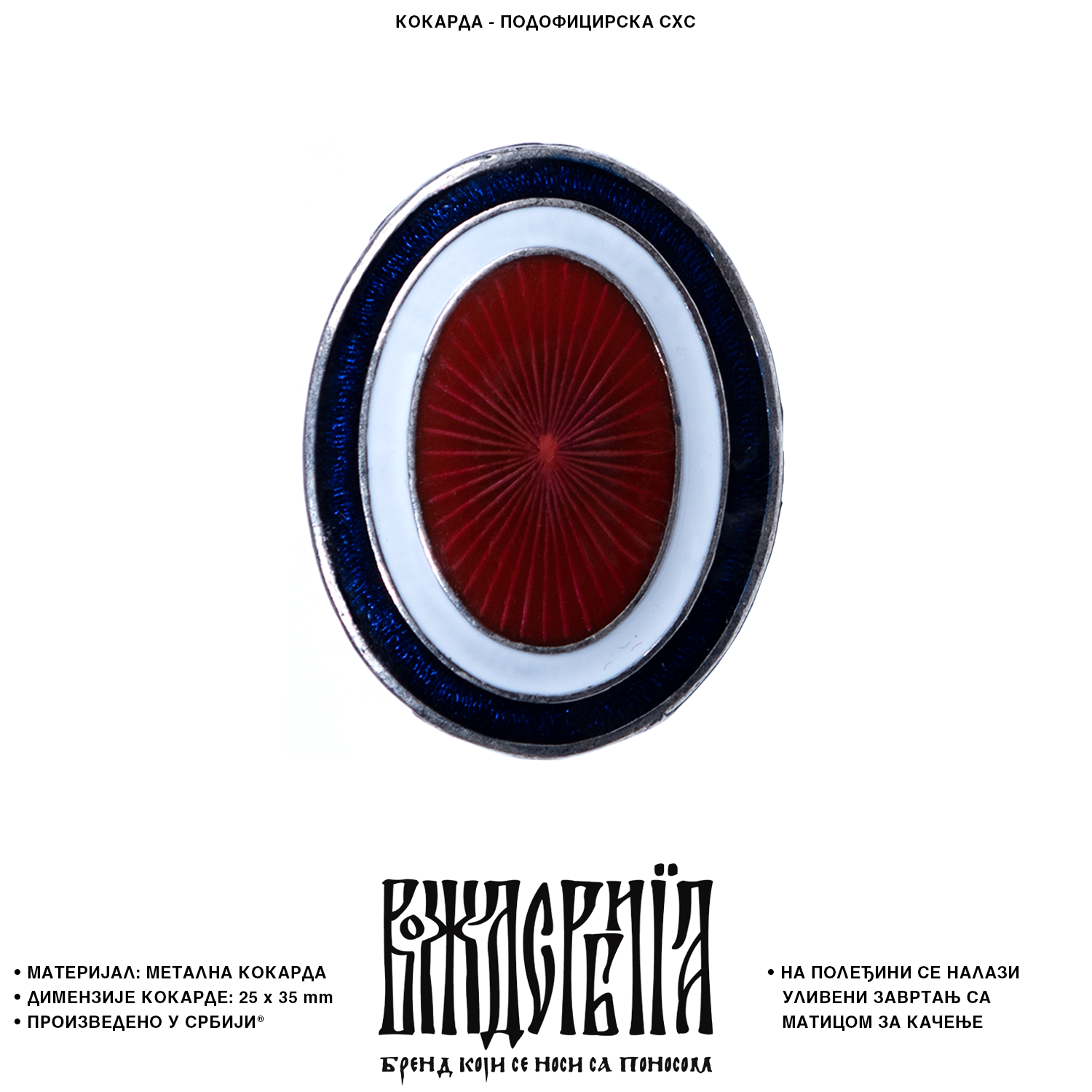 На полеђини кокарде се налази уливени завртањ са матицом за качење.