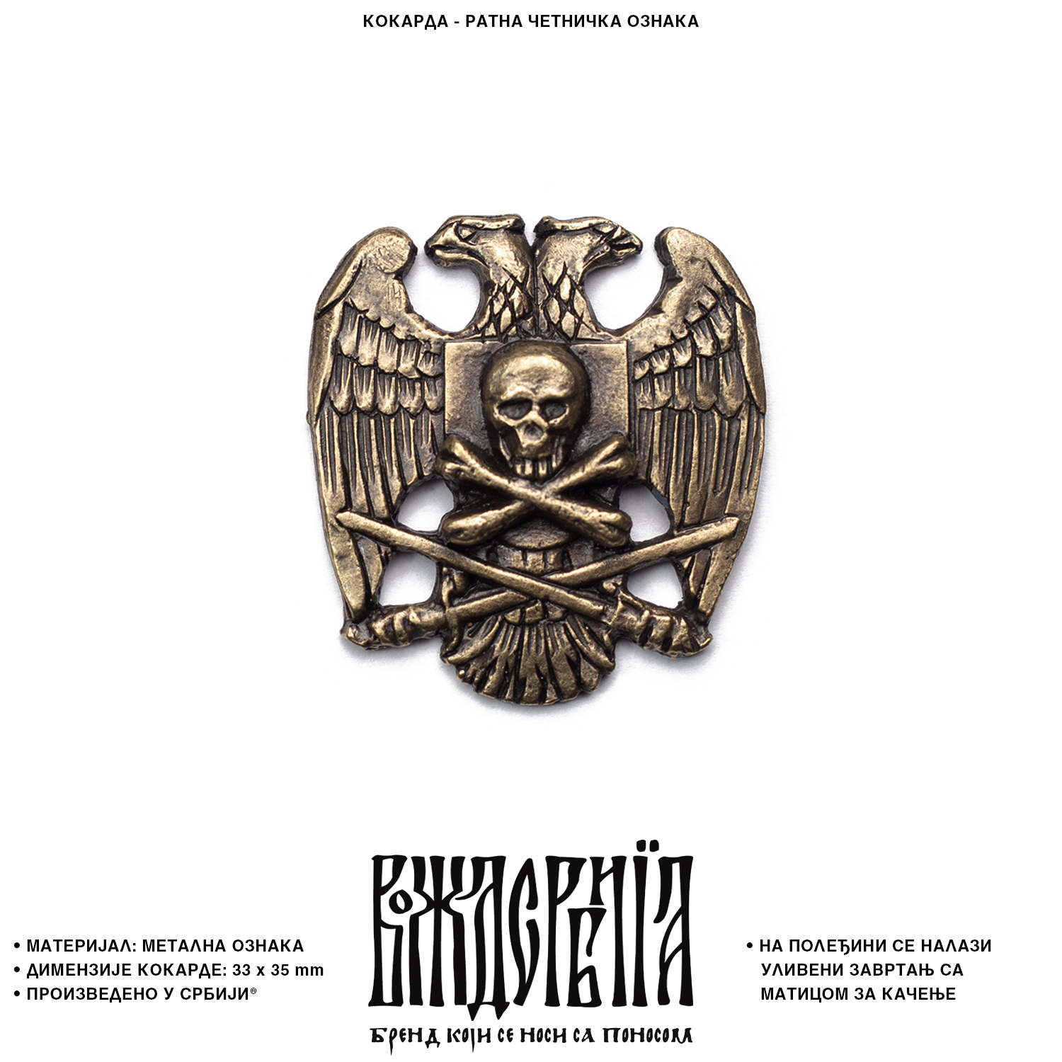 На полеђини кокарде се налази уливени завртањ са матицом за качење.