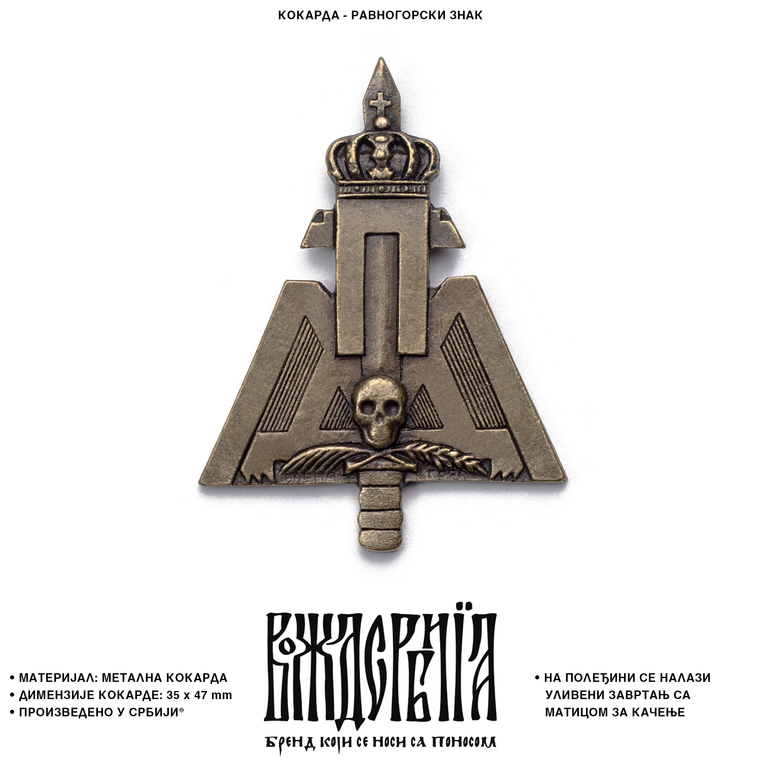 На полеђини кокарде се налази уливени завртањ са матицом за качење.
