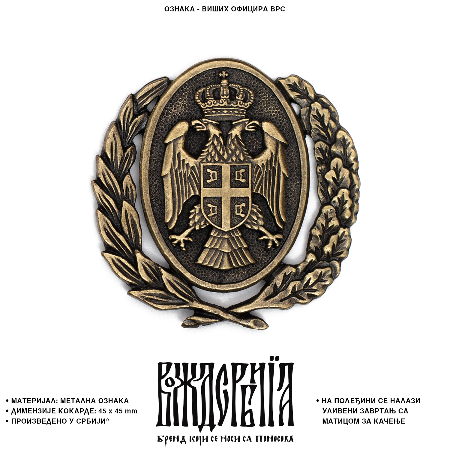 На полеђини кокарде се налази уливени завртањ са матицом за качење.