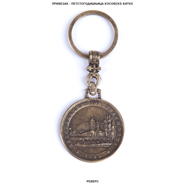 У реверсу медаље је приказ манастира Раваница и натпис ВИДОВДАНСКА ПЕТСТОГОДИШЊИЦА 1889