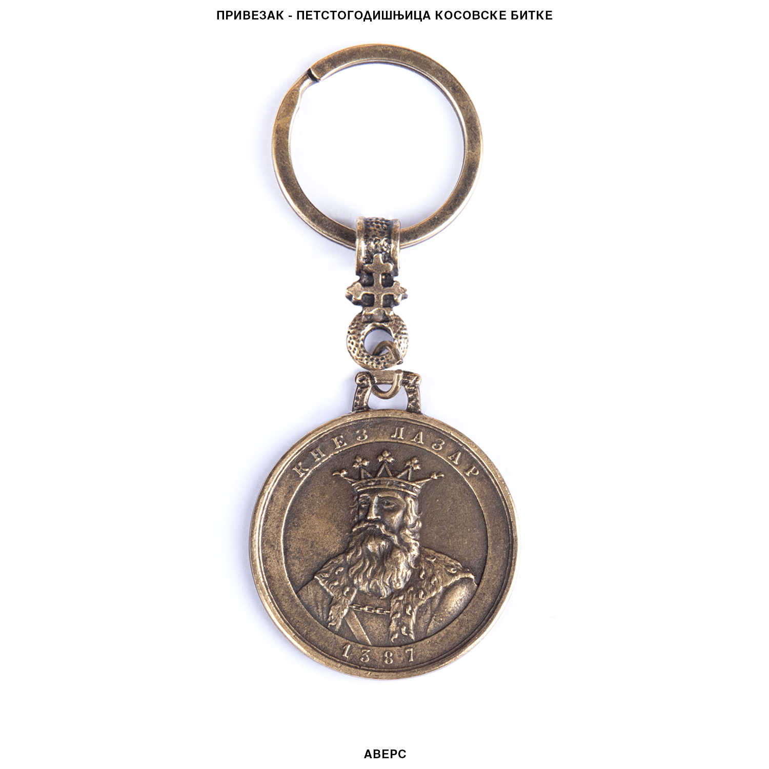 У аверсу медаље је приказ попрсја Кнеза Лазара и натпис КНЕЗ ЛАЗАР 1387